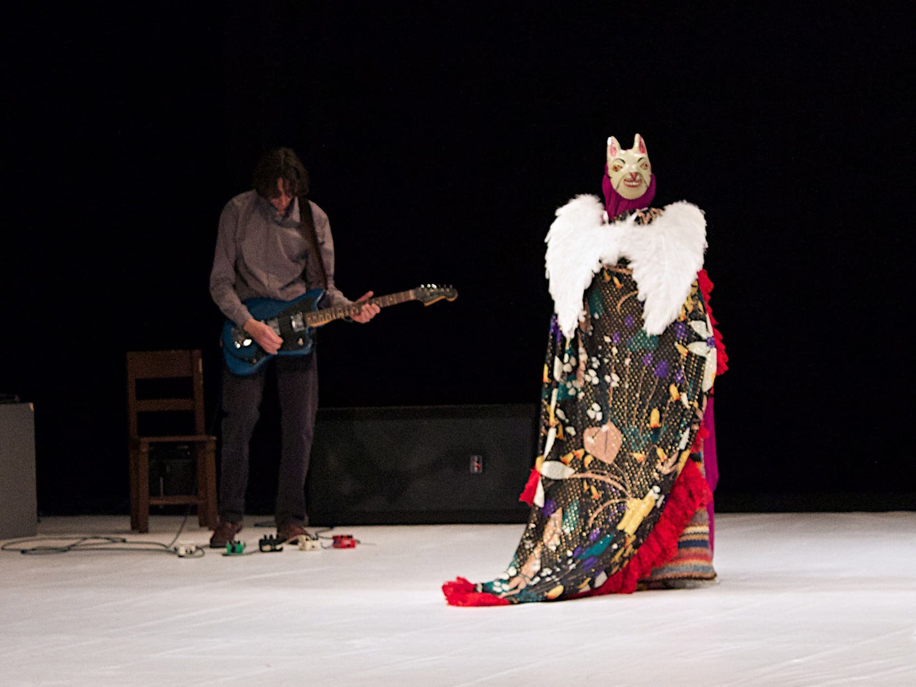 BLANC is based on a research about ritual, trance and transformation. Trying to peel the layers of the body and its environment revealing the multiple faces that composes the individual in the same way white color is made of all the other colors. The change of skin, the figure of the shaman. The body is crossed by fluxus of energies and images. It is, in one side, material and limited, and on the other side utopic, multiple and infinite. Moving between the strata of a continuum that goes from reality to fiction, from present to imaginary, and from rational to irrational. Cover Photo Gilles Aguilar - Performance Photo Jair Gonzales Ruiz