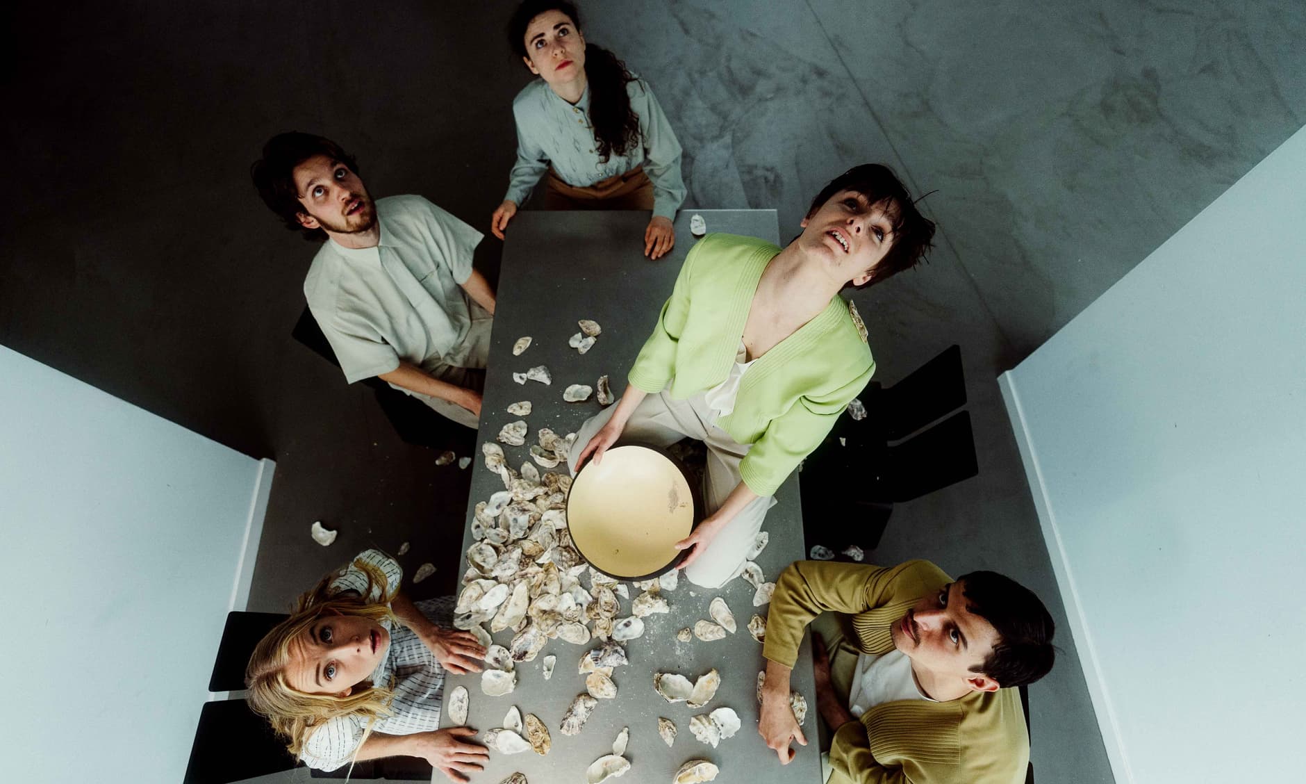 À travers les yeux d'un enfant, NUEX dépeint l'incapacité des êtres humains à se mettre à nu pour reconnecter les uns aux autres. La famille a atteint son point de rupture. S'ils ne s'unissent pas, les jours de débauche décadente sont comptés. Notre planète est asséchée et nos assiettes seront bientôt vides. Sommes-nous conscients de ce qui se passe sous notre table ? Qu'est-ce que le bonheur et qu'est-ce qui fait de nous des êtres humains? Photos © Cia Nadine Gerspacher