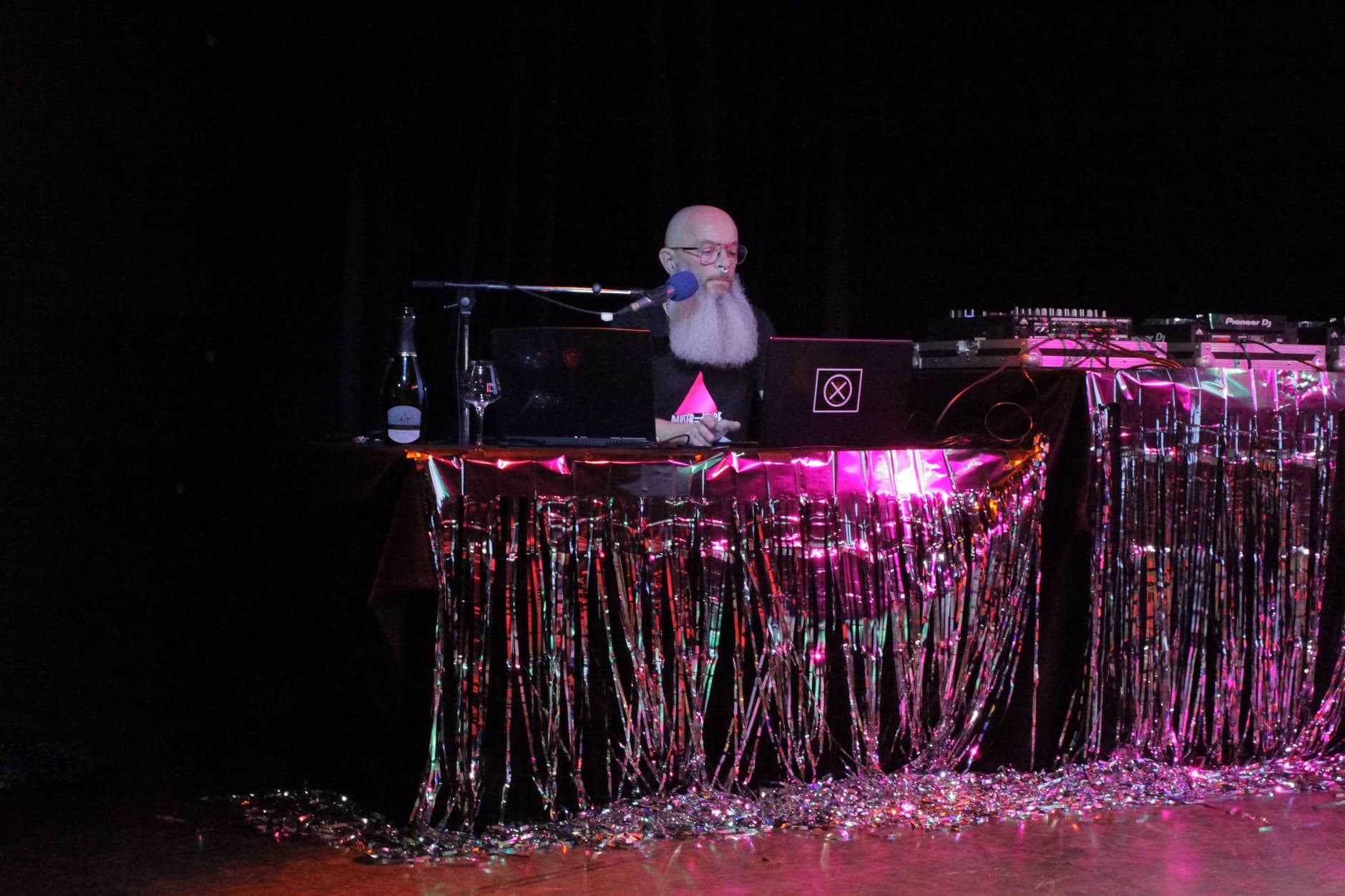 Frank Lamy was born in 1968. After studying literature, performing arts, business and art history, he began working as an art critic and exhibition curator in 1996. Since 2002, he has developed a DJ activity between performance and activism (notably with the projects Popisme - La Tournée (2003-2005), My Way (since 2003), La Discothèque Moderne (since 2010) and Queer As Us - Our Story (since 2021) Co-organizer of the PRETEXT evenings (Nouveau Casino, Divan du Monde, Web Bar, Batofar...) from 2002 to 2005, he founded the DJ duo Les Inapproprié.e.s (with Véronique Hubert) in 2019 which organizes parties and events (La Mutinerie, Le Point Éphémère, Transpalette, Center Wallonie Bruxelles...). © Queer As Us, Le Dancing, cwb Paris , 8 December 2021 © SMITH